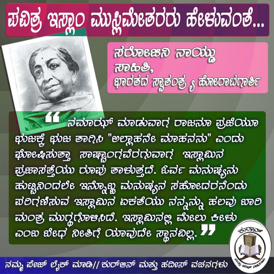 ಪ್ರವಾದಿಯವರ ಕುರಿತು ಮುಸ್ಲಿಮೇತರರ ನುಡಿ: ಸರೋಜಿನಿನಾಯ್ಡು