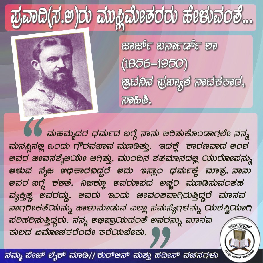 ಪ್ರವಾದಿಯವರ ಕುರಿತು ಮುಸ್ಲಿಮೇತರರ ನುಡಿ: ಜಾರ್ಜ್ ಬರ್ನಾಡ್ ಷಾ